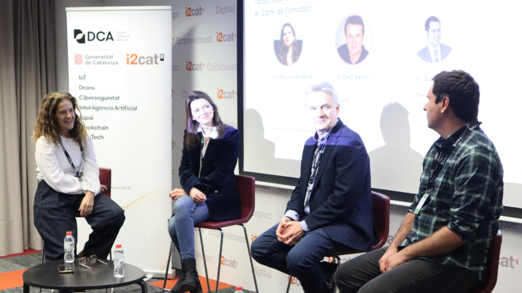 Hi han participat Mariona Badenas-Agustí (investigadora postdoctoral a la Universitat de Cambridge), Francesc Betorz (subdirector de Comunicacions Espacials a i2CAT) i Josep Virgili (Mission Operations a The Exploration Company). Els ponents han compartit les seves experiències internacionals i han reflexionat sobre com la col·laboració entre els professionals catalans distribuïts pel món pot impulsar la innovació i la competitivitat del sector local.