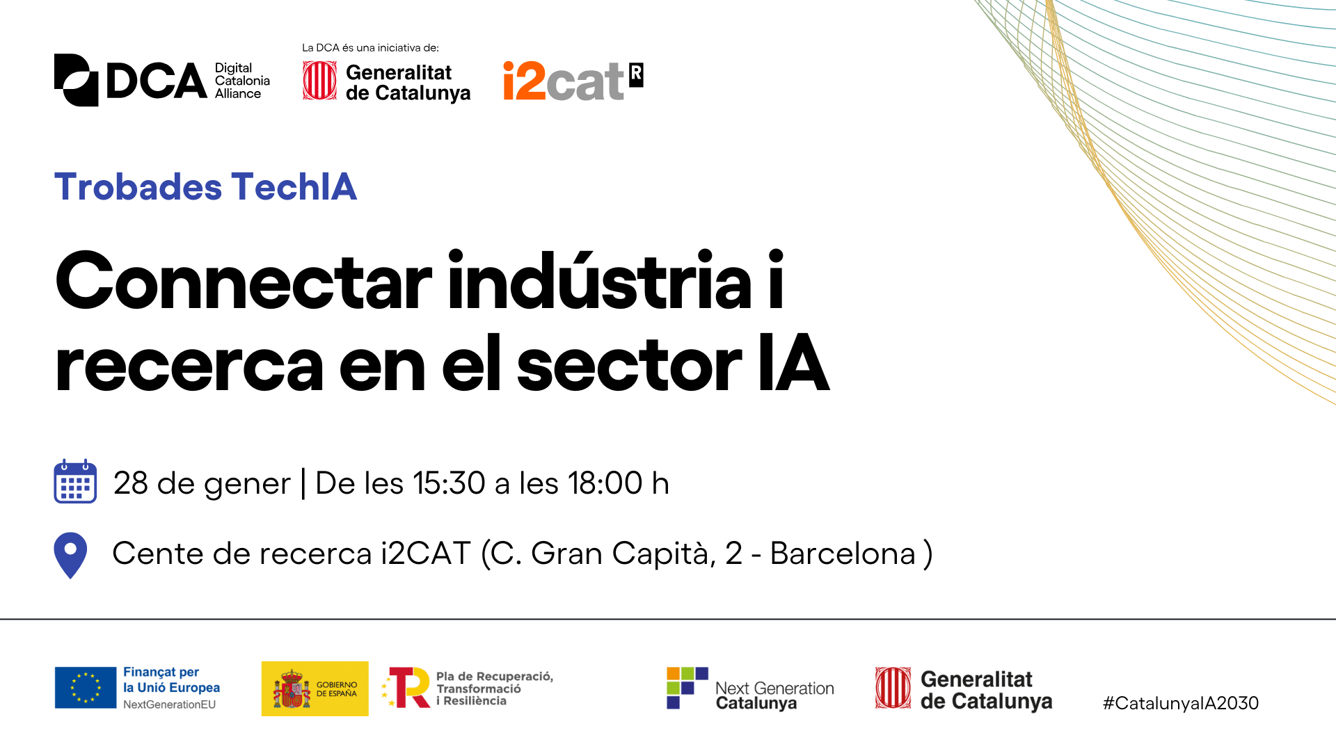 La Digital Catalonia Alliance (DCA) impulsa l’espai de trobada TechIA per aprofundir en les tendències del mercat, impulsar la innovació i connectar empreses tecnològiques i centres de recerca de referència a Catalunya per impulsar la col·laboració entre ells el dimecres 28 de gener de 15.30 a 18.00 h a la seu del Centre de recerca i2CAT.